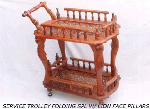 SERVICE TROLLEY FOLDING SPL. W/LION FACE PILLARS