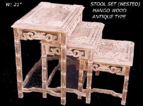 STOOL SET (NESTED) MANGO WOOD ANTIQUE TYPE