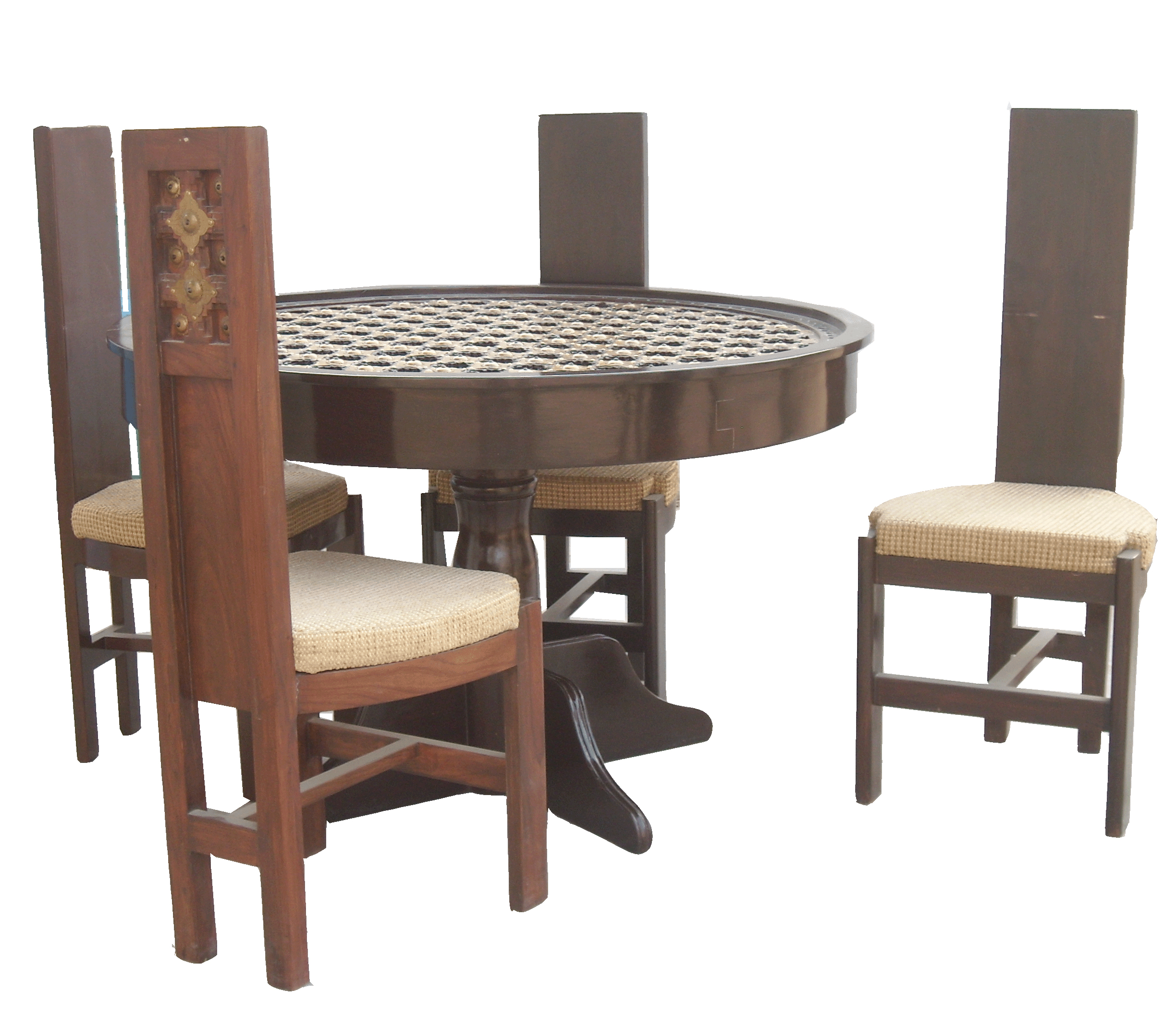 Dinning Set Round Bakhara Work (4 Seater)